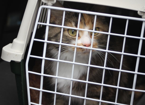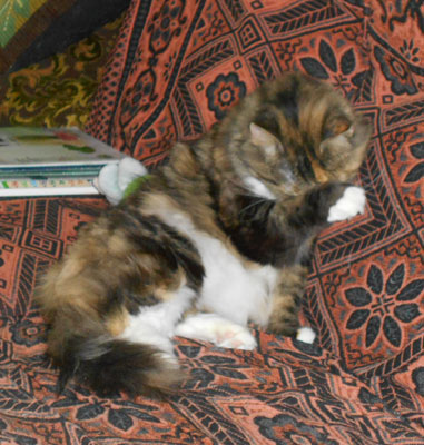 2017-11-03 Tussan har blivit kastrerad idag. Hon mår bra, får medicin, har ätit men måste tyvärr ha "kragen" några dagar, men har bara ett litet plåster.