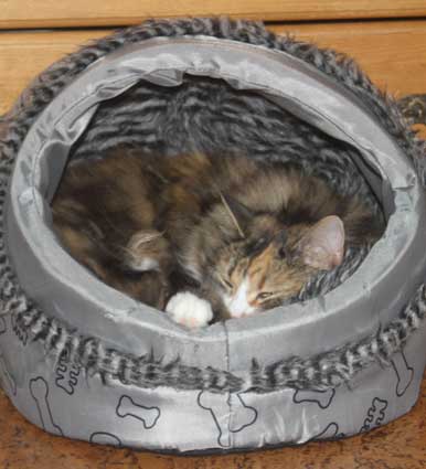 2017-11-16 Tussan ligger och har det skönt i korgen som hon får dela med Cilla ibland.