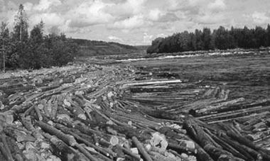 På logen, (uppe till vänster), som ägdes av min morfar, hade byn en gemensam tröskmaskin. Logen revs i mitten på 1950-talet. Några av stockarna från logen, finns nu, på Wärdshuset i Brännland!