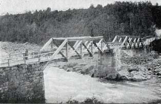 Den andra Sörforsbron. Det dröjde 66 år innan denna träbro blev färdig. Den byggdes 1875 - 1877, och blev färdig i maj 1877. För, att finanisera bron, så började man ta ut en avgift för, att få passera. En brovakt skötte grinden.