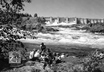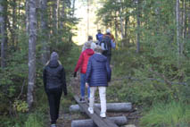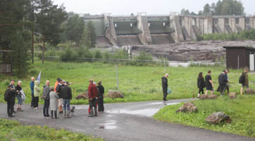 P.g.a regnvädret blev inte årets guidade tur, och ny-invigningen av Nötarstigen, vad vi hade hoppats på. Men flera deltagare trotsade vädret och promenerade efter Nötarstigen till Älvdungen, med Stig Lundström som guid.. I klubblokalen på Älvdungen bjöds alla på kaffe med kaka och varmkorv med bröd. Dan Lindgren berättade om fisket vid älven och visade sin modell av "Bärschtina" (Bergstina). Klubblokalen blev överaskande välfylld med även nyinflyttade sörforsbor..