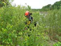 2018-06-07 Röjning vid Gammvarpet. Denna dag samlades Stig Lundström, Arne Lundström, Svante Ersson, Dan Lindgren och Per-Anders Westman för röjningsarbeten vid Gammvarpet. Stig och Arne var förseeda med röjsåg och vi övriga drog ihop i högar. (klicka på bilden för större)