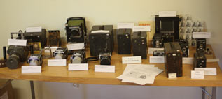 Per-Anders Westman presenterade småbildskamerans historia, från sin samling. Efter en tipspromenad och lotteri med fina vinster, var det nog gott med fika och varmkorv med bröd, som serverades mot frivillig betalning.