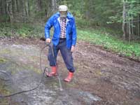 2012-08-01. Arbetet för denna dag var att rengöra Kvarnhällan och röja fram utsikten mot gamla kvarnen som låg strax nedanför gamla dammen. Vid hällan gick Ådröjevägen Vi avlägsna även mossa, löv och jord och konstatera, att de bomärken som kvarnbesökarna hackat in, i väntan på sin tur, fanns kvar.