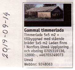 Vännerna beslutade därför, att annonsera ut ladan i Norrfors.