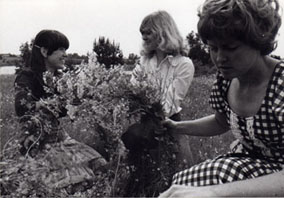 Sittande från vänster: fru Berglund, okänd, Gunni Westman, Mary Åhman, okänd.