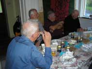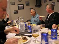 Arne Lundström, Stig Lundström, Gösta Nilsson, Folke Johansson, Einar Persson, Martin Löfqvist, Lars-Erik Lundberg, Per-Anders Westman och Dan Lindgren träffades för, att äta en förrätt med laxknyten. Därefter nätting, mandelpotatis, tunnbröd och dryck. Kaffe och kaka. Mycket gott. Ett stort tack till Stig, Arne och Dan som ansvarade för middagen.