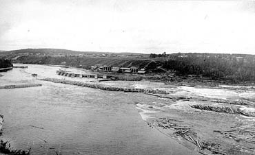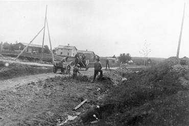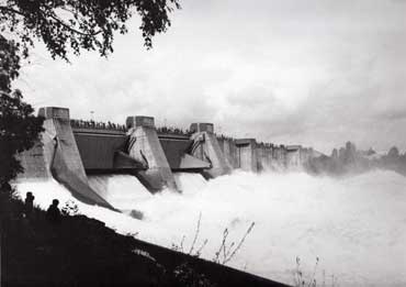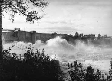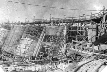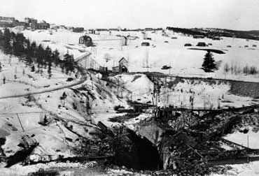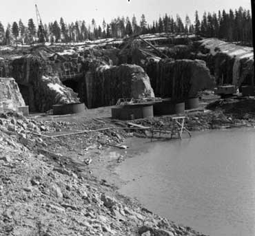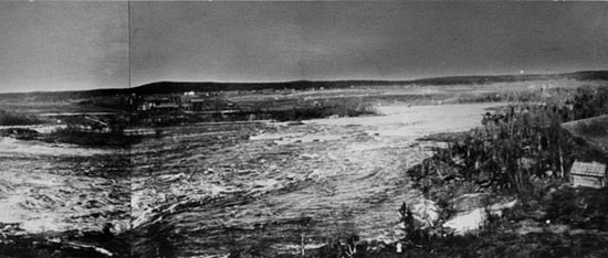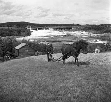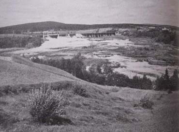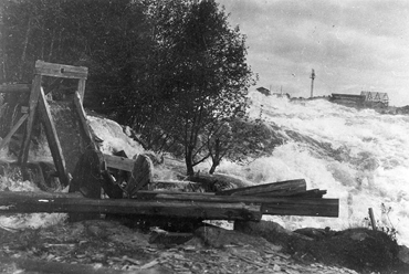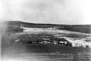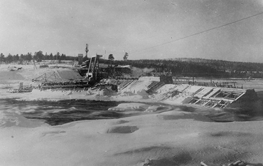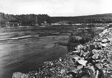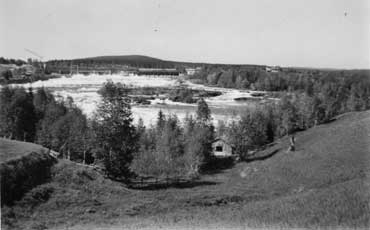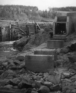 |  Gamla dammen och nya under byggnad. |  Utgrävning för Stornorrfors. Himlaberg i