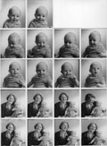 Seriebilder. Seriebilder (polyfoto), var vanliga ateljefotograferingar från mitten av 1930-talet och fram till 1960-talet. Med en specialkamera med skjutbart bakstycke kunde man ta upp till 48 bilder i format från 1,3cmx1,3cm på en ca 13x18cm negativ. Vanliga svenska seriebilds-kameror, Fritz Weist & Co "Fotomat" (ca 1945), Hugo Svensson & Co "Hessco Multiplex" (ca 1930-40-tal) och AB Foko (ca 1930). Från provkarta, enligt bild, kunde förstorningar beställas. På bilden ses en karta om 20 bilder.