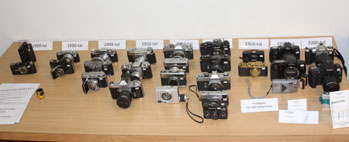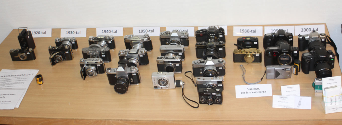 Per-Anders Westman presenterade småbildskamerans historia, från sin samling. Efter en tipspromenad och lotteri med fina vinster, var det nog gott med fika och varmkorv med bröd, som serverades mot frivillig betalning.