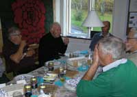 Arne Lundström, Stig Lundström, Gösta Nilsson, Folke Johansson, Einar Persson, Martin Löfqvist, Lars-Erik Lundberg, Per-Anders Westman och Dan Lindgren träffades för, att äta en förrätt med laxknyten. Därefter nätting, mandelpotatis, tunnbröd och dryck. Kaffe och kaka. Mycket gott. Ett stort tack till Stig, Arne och Dan som ansvarade för middagen.