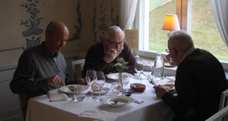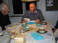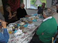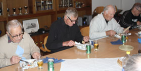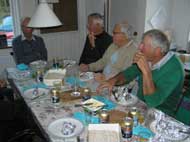 Arne Lundström, Stig Lundström, Gösta Nilsson, Folke Johansson, Einar Persson, Martin Löfqvist, Lars-Erik Lundberg, Per-Anders Westman och Dan Lindgren träffades för, att äta en förrätt med laxknyten. Därefter nätting, mandelpotatis, tunnbröd och dryck. Kaffe och kaka. Mycket gott. Ett stort tack till Stig, Arne och Dan som ansvarade för middagen.