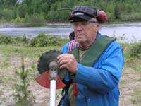 P.g.a regnvädret blev inte årets guidade tur, och ny-invigningen av Nötarstigen, vad vi hade hoppats på. Men flera deltagare trotsade vädret och promenerade efter Nötarstigen till Älvdungen, med Stig Lundström som guid.. I klubblokalen på Älvdungen bjöds alla på kaffe med kaka och varmkorv med bröd. Dan Lindgren berättade om fisket vid älven och visade sin modell av "Bärschtina" (Bergstina). Klubblokalen blev överaskande välfylld med även nyinflyttade sörforsbor..