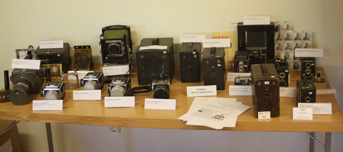 Per-Anders Westman presenterade småbildskamerans historia, från sin samling. Efter en tipspromenad och lotteri med fina vinster, var det nog gott med fika och varmkorv med bröd, som serverades mot frivillig betalning.