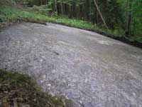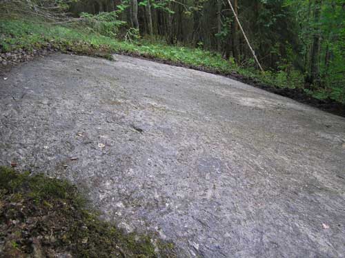 2012-08-01. Arbetet för denna dag var att rengöra Kvarnhällan och röja fram utsikten mot gamla kvarnen som låg strax nedanför gamla dammen. Vid hällan gick Ådröjevägen Vi avlägsna även mossa, löv och jord och konstatera, att de bomärken som kvarnbesökarna hackat in, i väntan på sin tur, fanns kvar.