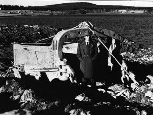 Det som här följer hände troligen 1920 eller 1921. TV och radio fanns ju inte, så vinterkvällarna blev ganska långa. Ett trevligt avbrott var därför när vi fick besök av sörforsgubbar som kom och hälsade på sedan de gjort undan ladugårdsarbetet på kvällen. Några jag särskilt minns var Nils Andersson (Nings Annersa), Bernhard Löfgren, Karl Löfqvist och Nils Sandén. En historia de berättade fastnade för alltid i mitt då 9-10-åriga huvud: