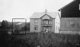 På logen, (uppe till vänster), som ägdes av min morfar, hade byn en gemensam tröskmaskin. Logen revs i mitten på 1950-talet. Några av stockarna från logen, finns nu, på Wärdshuset i Brännland!