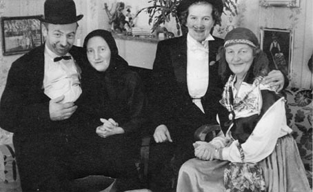 Vid uppvaktningar var de ofta utklädda. På bild 1 ses fr.v Karl-Gustav W, Gunni W, Alice Granberg och Syster Löfgren. Bilden är troligen tagen i början på 1960-talet, i Westmans rum, i samband med någon uppvaktning.
