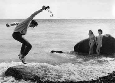 Fotograf med kamera på stativ, vid Brudslöjan,