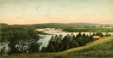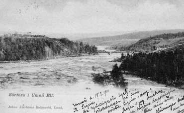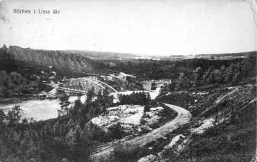 Vykort över Sörfors och Umeälven vid Sörfors