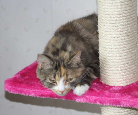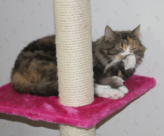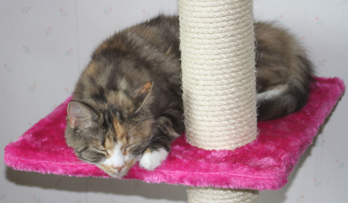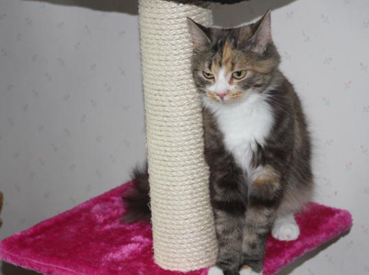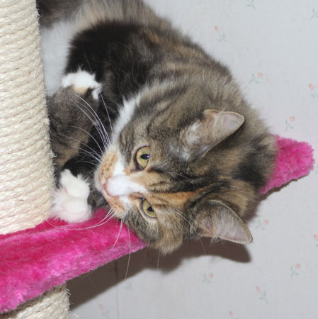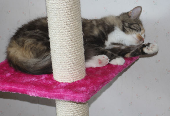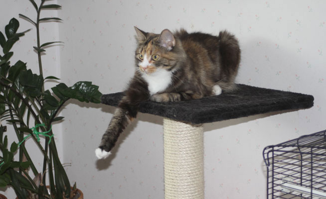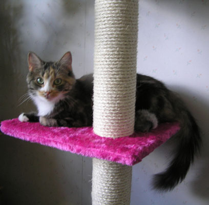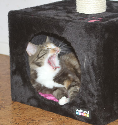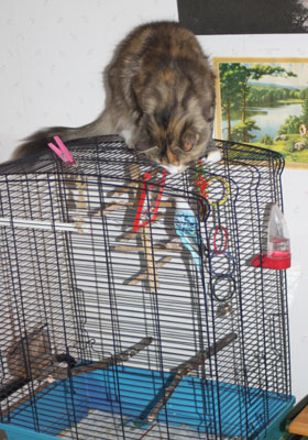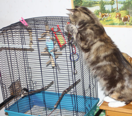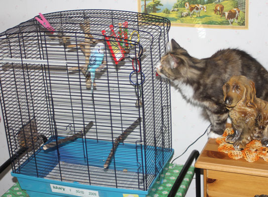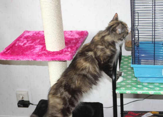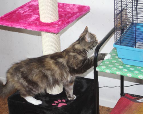 Från den nya klöspelaren kan hon även titta på undulaten Hany!