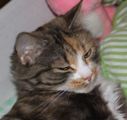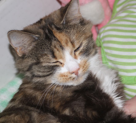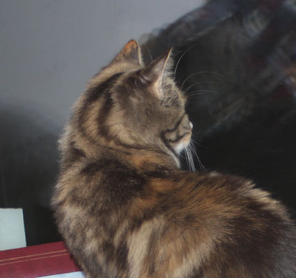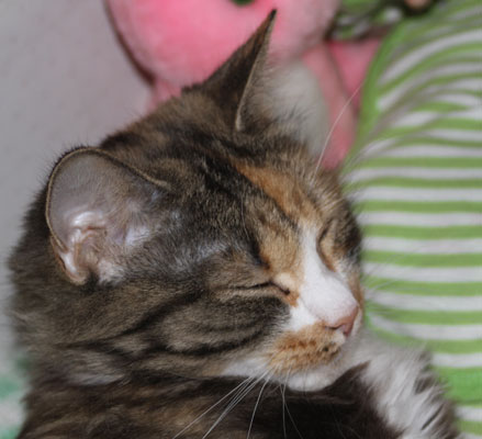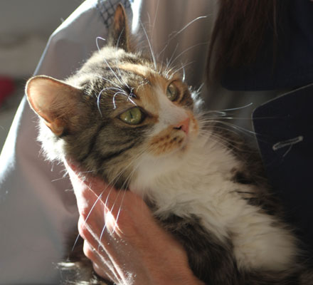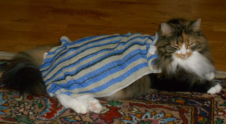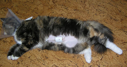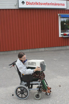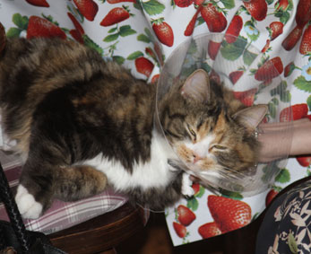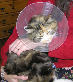 2017-11-03 Tussan har blivit kastrerad idag. Hon mår bra, får medicin, har ätit men måste tyvärr ha "kragen" några dagar, men har bara ett litet plåster.