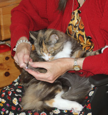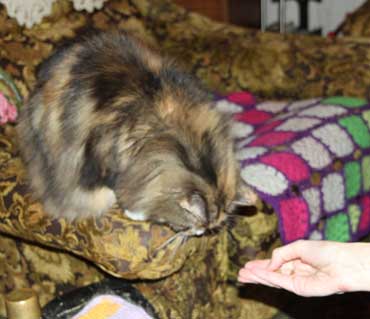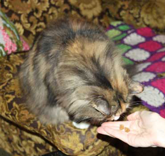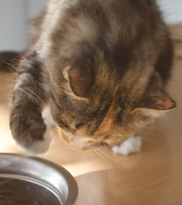 2019-12-24 Tussan får julaftonsmaten "Sheba Lax, i sås"