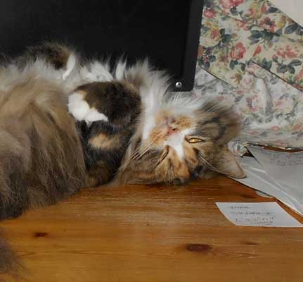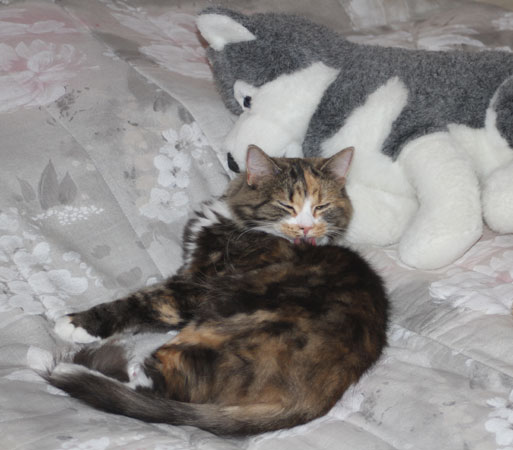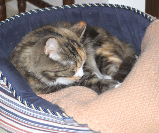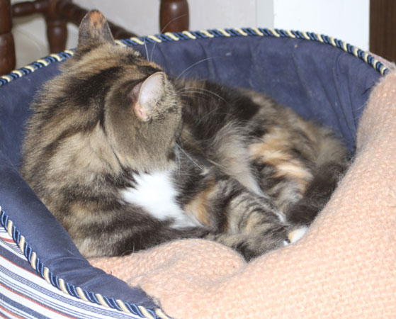 2017-11-16 Tussan ligger och har det skönt i korgen som hon får dela med Cilla ibland.