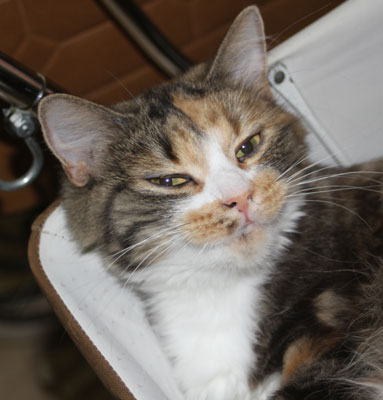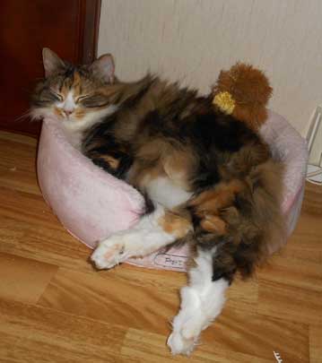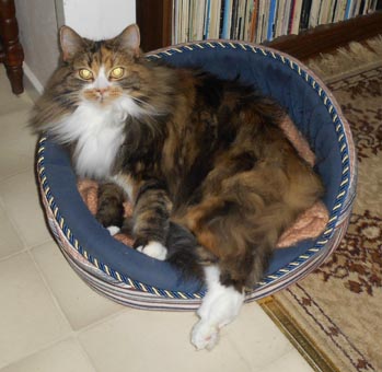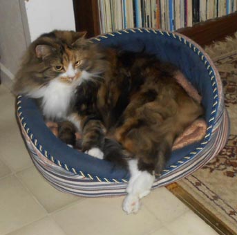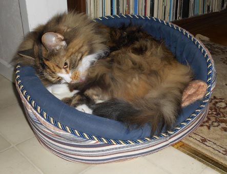 2017-08-28 I den här korgen brukar även Cilla ligga men den är nu okuperad av Tussan Mjuk och jätteskön.