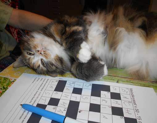 2018-12-16 Tussan löser Melodikrysset, tillsammans med matte och husse