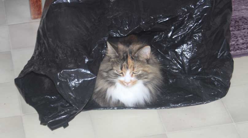 Här har Tussan krypit in i en plastsäck, 2019-06-01