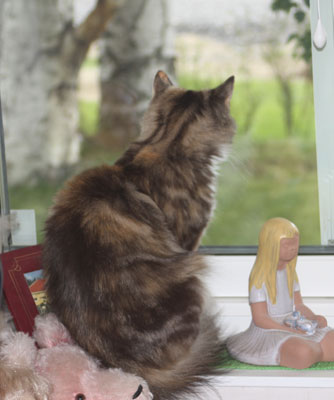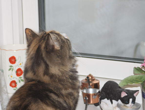 Tussan tittar på fåglarna ute 2019-03-22