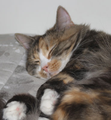 Hon har nu fått namnet Tussan, en härlig liten kisse! Lugn och gillar, att mysa. Och det går jättebra tillsammans med vår hund Cilla och våra undulater.