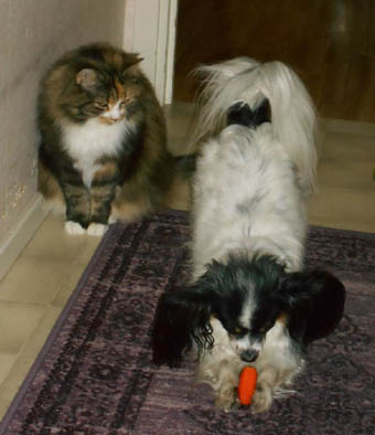 Cilla äter morot och Tussan tittar på, 2020-05-07